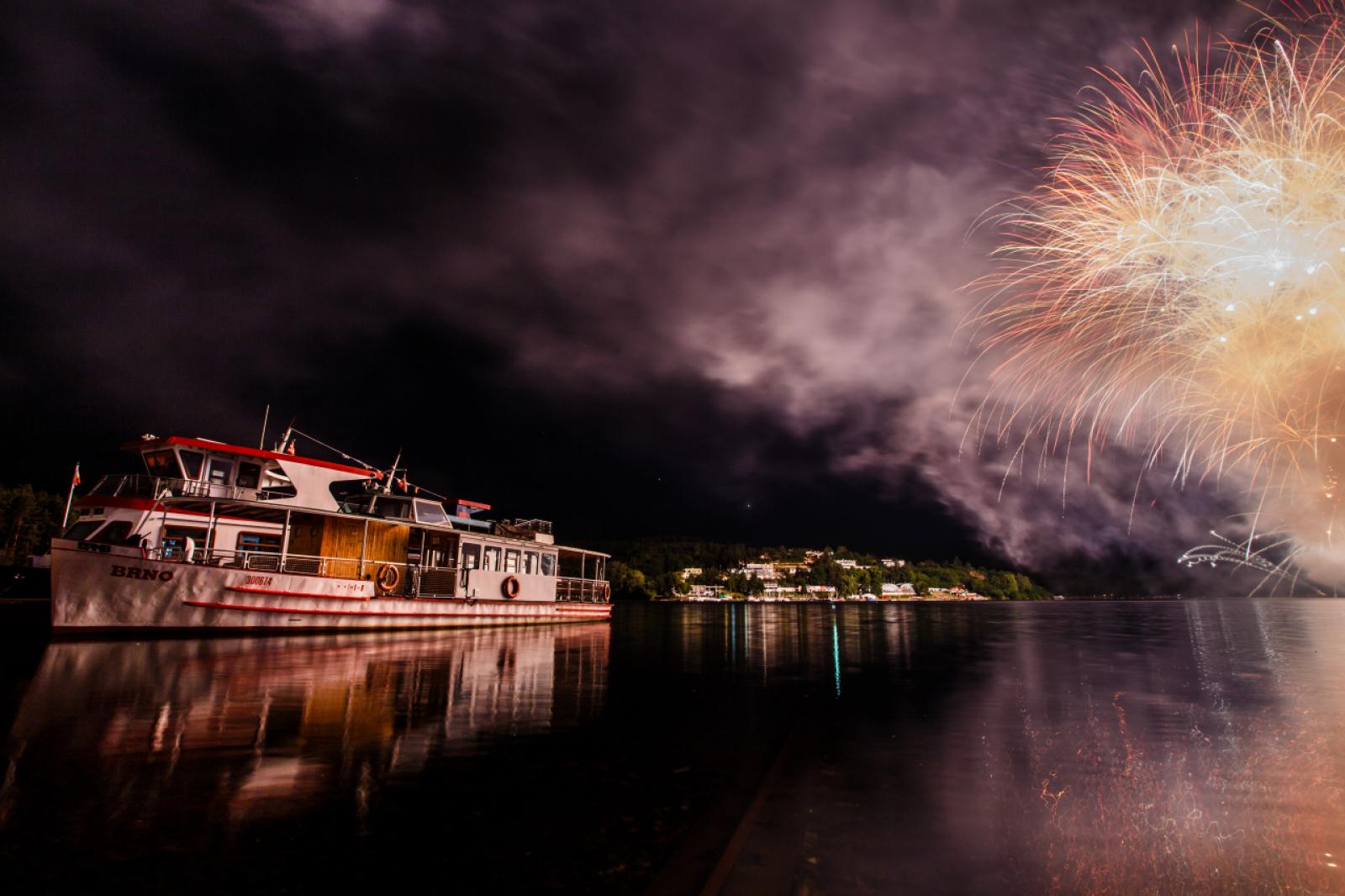 Fast an allen Anlegestellen locken die Sommergaststätten und Gärten zu gekühltem Bier. Strand- und Badvergnügungen ziehen manche Ausflüger vor. Die Schiffe fahren bis zum Wendepunkt bei der Burg Veveří. Nachdem man sich diese Burganlageangesehen hat, kann man von dort aus wieder mit dem Schiff zurückfahren oder auch auf rotmarkiertem Wege am Ufer entlang bis zum Hafen in Bystrc diese etwa 8 Kilometer lange Route per Fuß zurücklegen. Um nicht zu vergessen – seit Jahren findet jedes Jahr im Juni ein bekannter Feuerwerkwettbewerb Ignis Brunensis am Brünner Stausee statt. Diese internationale Feuerwerkschau ist ein besonderes Erlebnis. Sie sind eingeladen uns zu besuchen. Und nicht nur zum Feuerwerk.