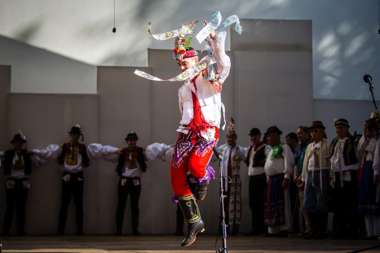 Der Verbuňk aus der Mährischen Slowakei ist einer der männlichen Tänze mit springendem Charakter. Was kann man sich vorstellen, wenn man YouTube nicht zur Hand hat? Gut aussehende Männer in wunderschön bestickten Kostümen, Federn an den Hüten und eine herzliche Choreografie, bei der die Füße definitiv nicht am Boden bleiben. Verbuňk ist ein improvisierter Tanz. Meistens wird er in einer Gruppe getanzt, aber jeder Tänzer tanzt für sich allein, je nach Region und Dorf, dem er angehört. Und auch nach ihren tänzerischen Fähigkeiten, ihrem Talent und ihrem Charakter.