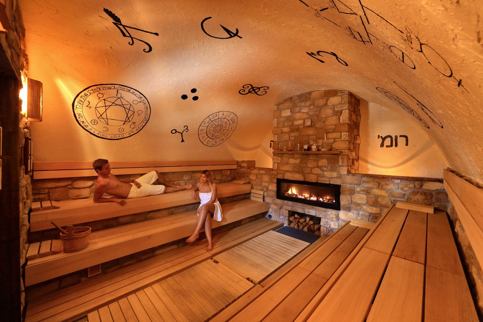 Wählen Sie aus 12 einzigartigen Saunatypen aus und gönnen Sie sich Entspannung. Eine Sauna ist einer prähistorischen Höhle nachempfunden, eine andere einem Weinkeller und die dritte bietet einen Panoramablick auf den See. Nach Ihrem Saunagang können Sie sich im Innen- oder Außenbereich entspannen. Setzen Sie sich an den Kamin, und an sonnigen Tagen können Sie sich auf der Wiese ausstrecken.