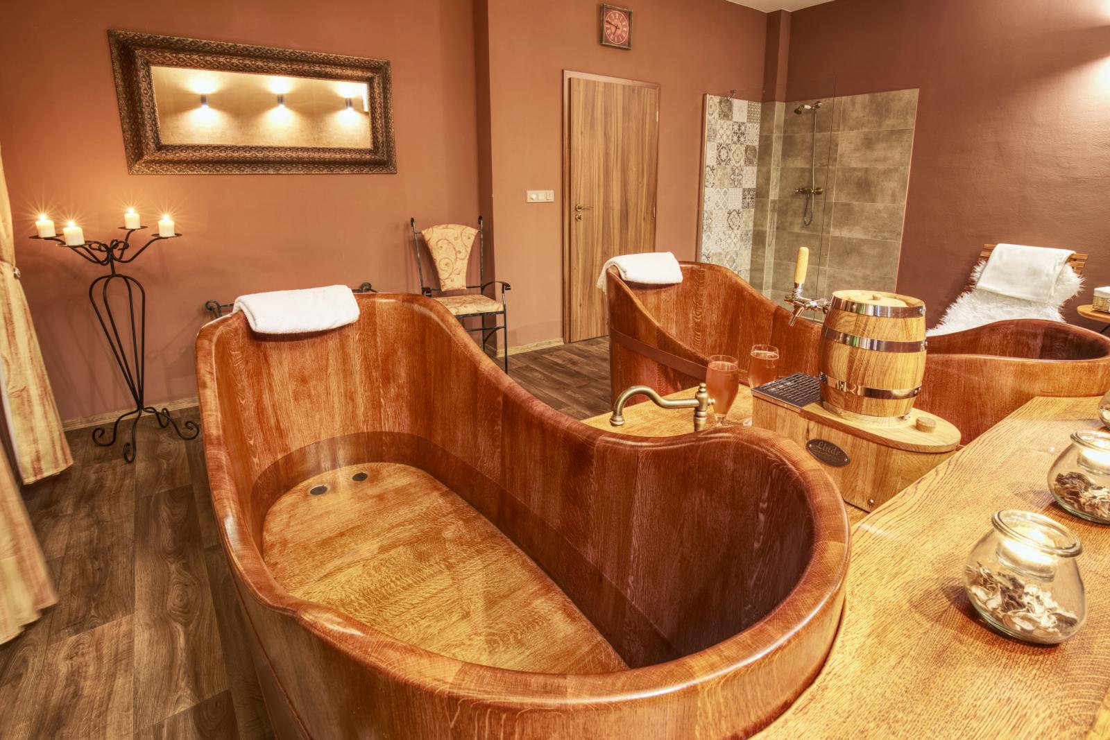 Planen Sie einen Moment für sich selbst oder ein außergewöhnliches Erlebnis für zwei und kommen Sie und legen Sie sich in einen Holzbottich. Hier werden diese aus duftendem Eichen- und Lärchenholz aus den nahen Weißen Karpaten hergestellt.