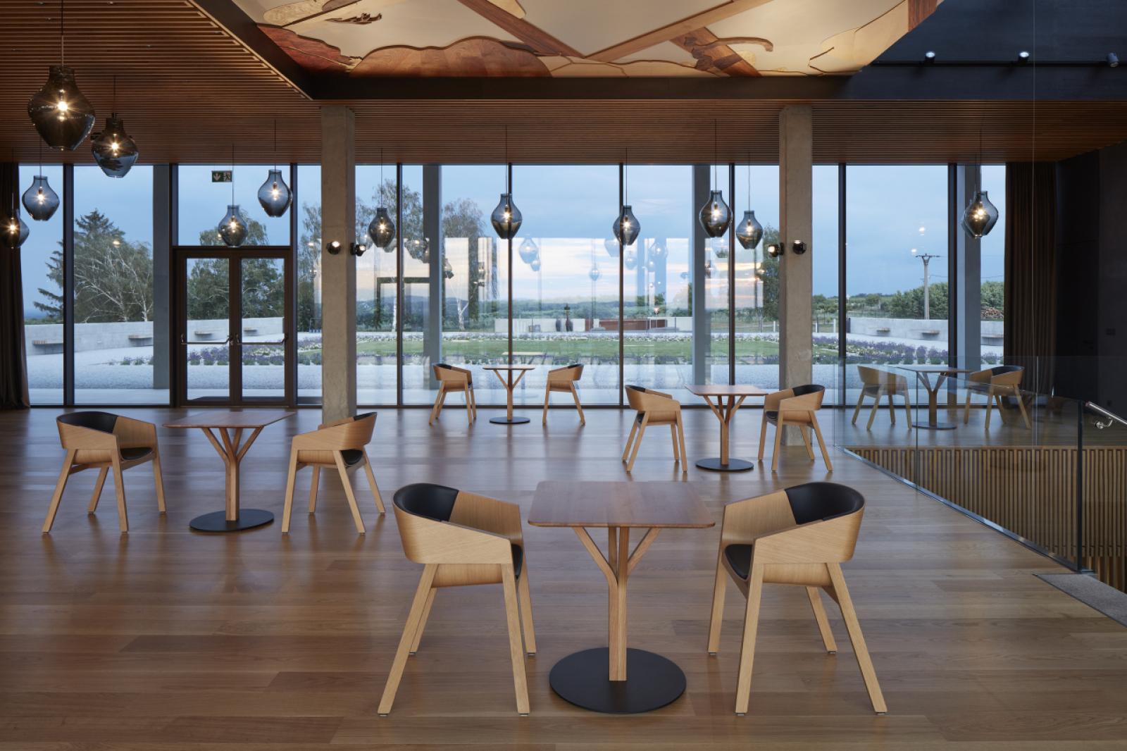 Auch in diesem Weingut können Sie bei einem edlen Tropfen die Aussicht auf die Talsperre Nové Mlýny genießen. Das Atelier ORA aus Znojmo hat eine ehemalige Lagerhalle in Pavlov in eine Weinbar verwandelt. Der einfache Bau mit seinem Satteldach lässt die raffiniert gestaltete Einrichtung umso stärker hervortreten. Bei ORA setzte man auf natürliche Materialien und ein speziell entworfenes Designermobiliar mit Motiven aus der Welt des Weinbaus. Die Bar und die große Terrasse für Weinverkostungen wurden durch bis zum Boden reichende Fenster miteinander verbunden. Das Interieur wurde bewusst einfach gehalten, um nicht von den Höhepunkten in der umgebenden Landschaft abzulenken. Und von denen gibt es hier einige – die schon genannte Wasserfläche, die weitläufigen Weinberge und vor allem die bekannte Burgruine Děvičky, das Ziel der meisten Ausflügler in dieser Gegend.