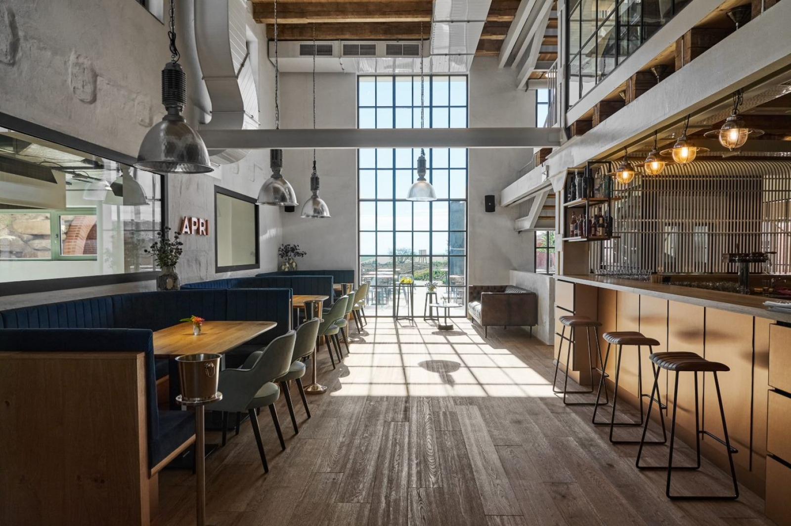 An das gewellte Dach schließt sich in fließendem Übergang eine künstlich angelegte Anhöhe mit den Degustationskellern und den Appartements an. Der zur Erholung dienende Hof verweist auf die Tradition der fränkischen Höfe, wo man im Mittelalter die Trauben verarbeitete. Im Restaurant Apri werden die eigenen Weine zu herausragenden Speisen gereicht. In der Küche setzt man auf Zutaten aus der Region und traditionelle Rezepte in einem modernen Gewand. Probieren Sie einmal Wild aus den Wäldern der Region oder Fisch aus den Teichen gleich nebenan, und das alles gewürzt mit Kräutern, die direkt auf den Ländereien des Weinguts wachsen. Und was für Weine erwarten Sie hier? Der Önologe des Hauses meint dazu: „Den Wein ziehen wir wie ein Kind groß. Wir formen ihn nicht mit Strenge, sondern führen ihn an der Hand, damit er sich zur vollen Reife entfalten kann.“