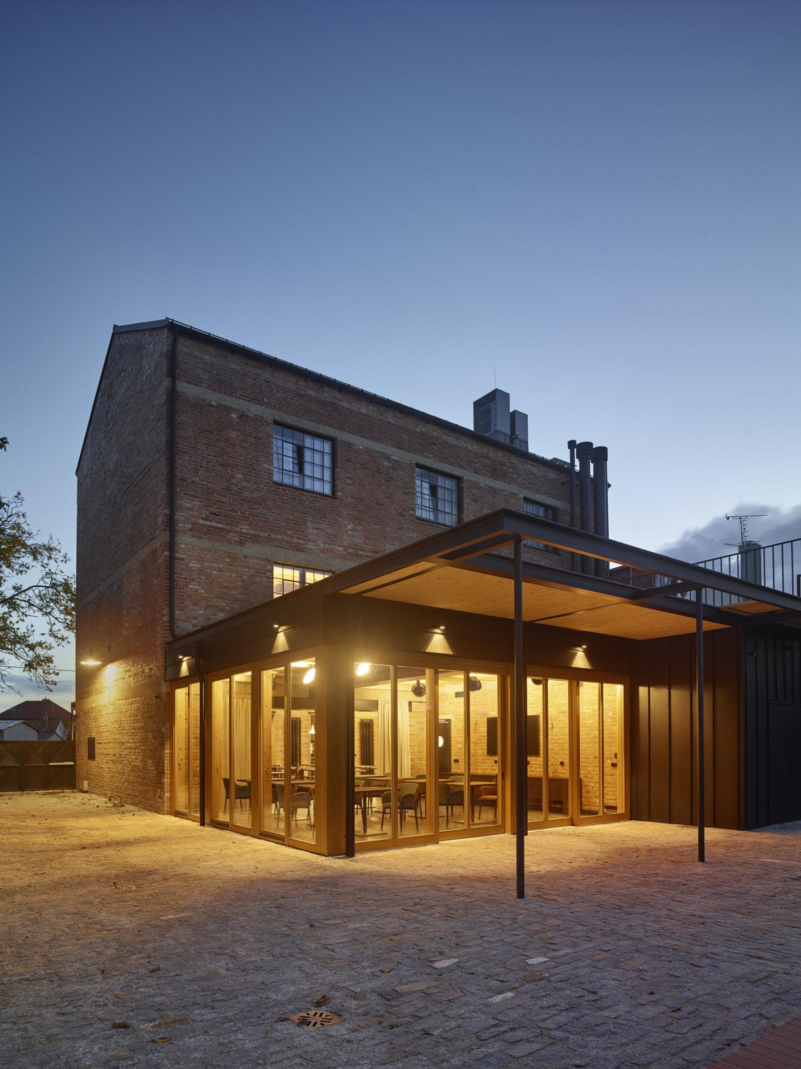Hinter dem Entwurf steht wiederum das Architekturbüro Pelčák und Partner. Die markante Backsteinfassade wurde restauriert, und es wurde ein neues Dach aufgesetzt. Zu beiden Seiten der Mühle kann man draußen im Garten sitzen – wählen Sie ganz nach Lust und Laune, ob Sie das geschäftige Treiben auf der Hauptstraße von Hrušky verfolgen wollen oder lieber die meditative Stille des Gartens auf der anderen Seite genießen möchten.
